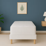 L'Ensemble ZEN Sommier et Matelas associe des matériaux de haute qualité pour une durabilité optimale. Son sommier et matelas sont traités antibactériens et antiacariens, offrant ainsi une hygiène irréprochable. Grâce à sa structure en pin massif et ses pieds robustes de 15 cm, il offre une excellente résistance dans le temps.
